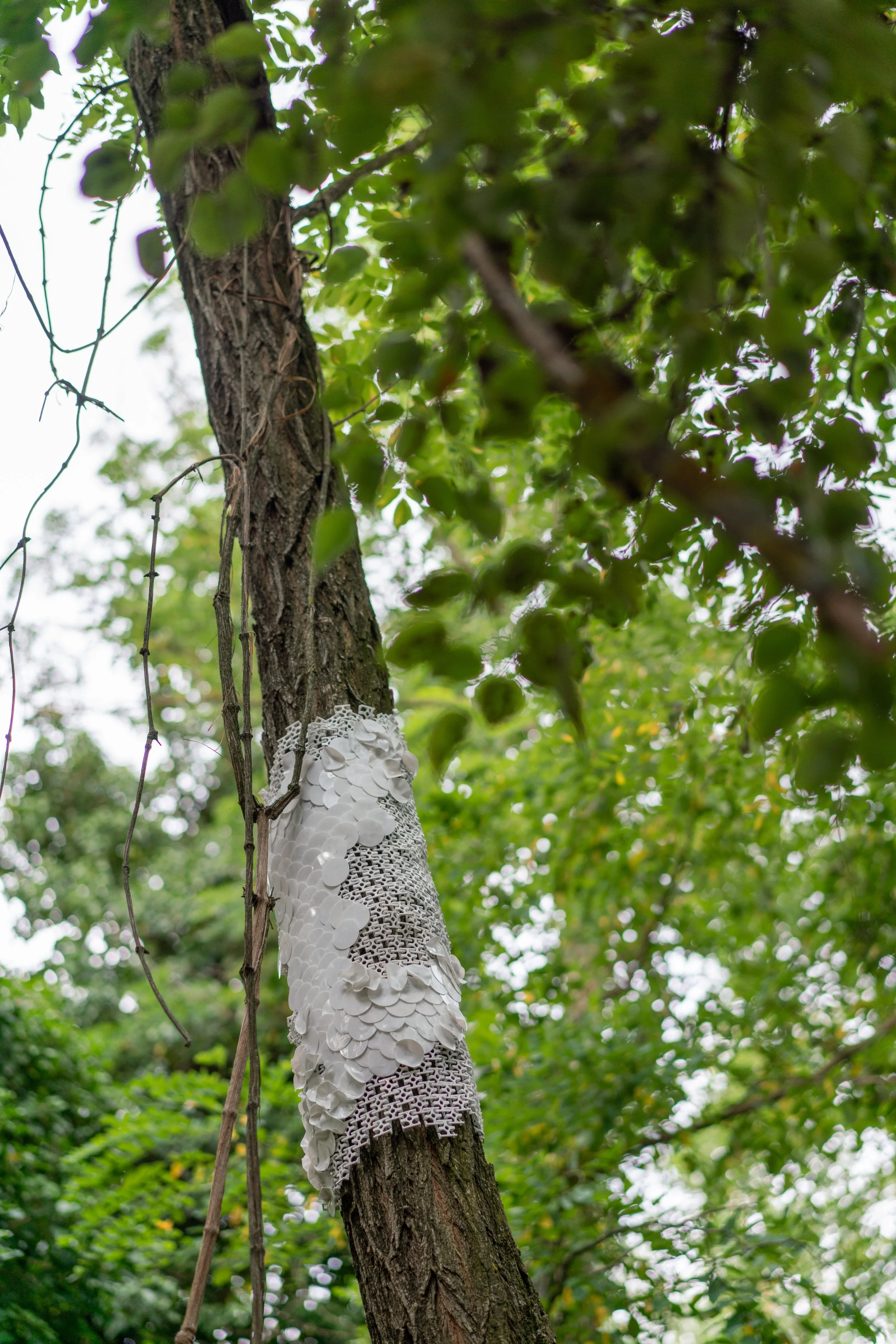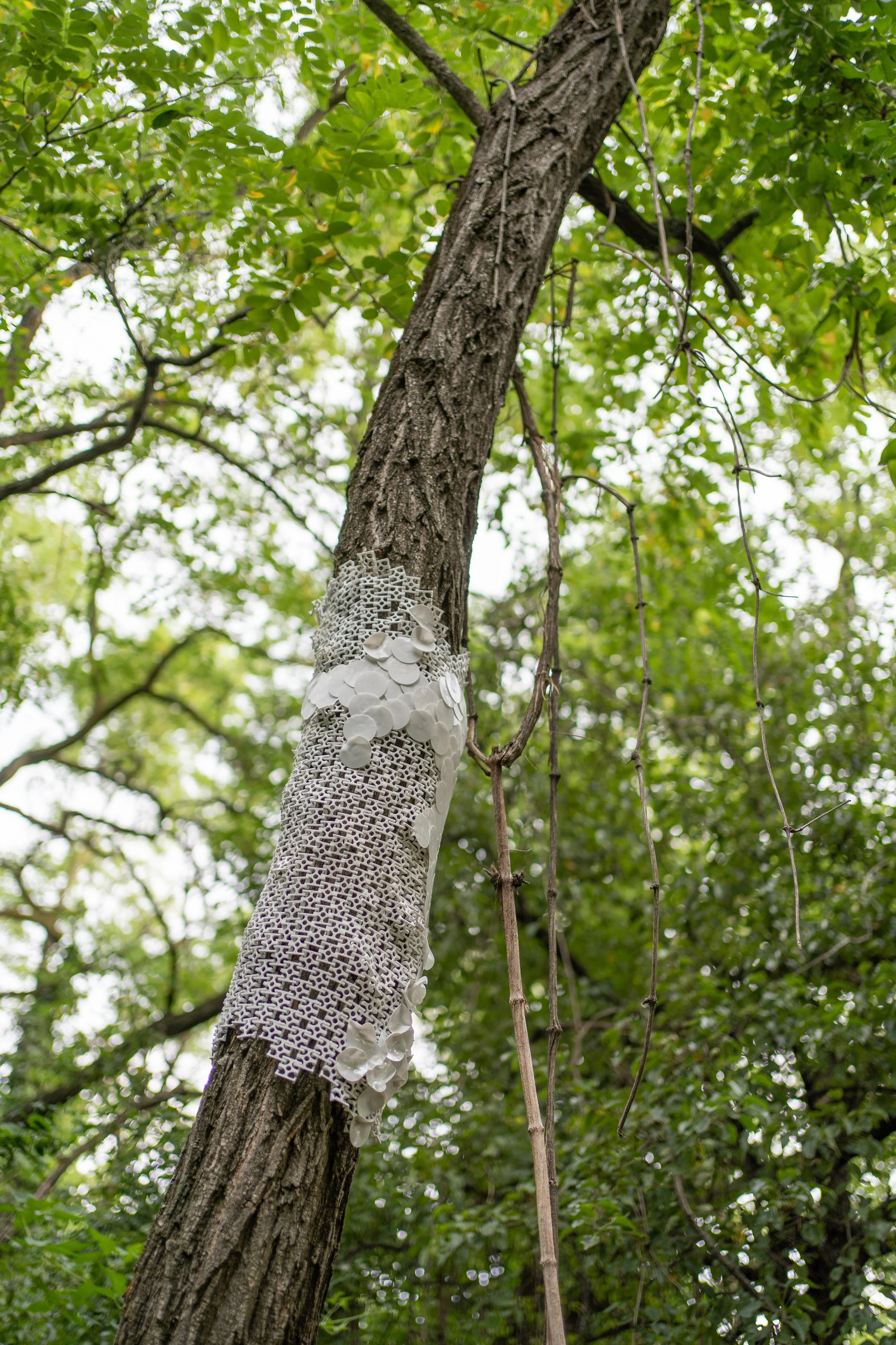 A kiállított installáció egy olyan 3D nyomtatott szobor, amely egy fa törzsét lazán átölelő összekapcsolódó modulelemekből áll. Az egyes modulelemek hálózatos rendszerben összekapcsolódva olyan szerkezetet adnak ki amely a fával együtt veszi fel a végső alakját más kötőanyag használata nélkül. A 3D nyomtatott szerkezet a fával együtt létezik és rámutat azokra a csomópontokra, ahol a digitális technológia, a résztvevő elemek, és a kulturális teória a tradicionális kategóriákon túlnyúlva összetalálkozik és együttműködik megkérdőjelezve a párhuzamos, ellentétes vagy szimmetrikus létezések hosszútávú fenntartthatóságát.